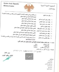 وزارة العدل تصدر لائحة التشكيلات القضائية الجديدة في عدلية ريف دمشق
