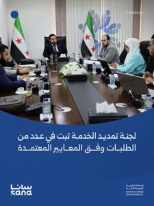 استعرضت اللجنة خلال الاجتماع عدداً من طلبات التمديد المحالة إليها، وجرى تقييمها وفقاً للضوابط المعتمدة، وبما ينسجم مع الوظائف والاختصاصات النوعية، وقد تم اتخاذ قرارات بخصوص عدد من الحالات، على أن يُستكمل التنسيق مع الجهات المعنية للبت في باقي الطلبات.